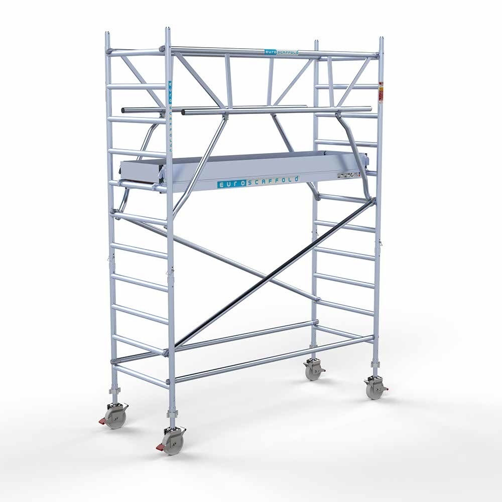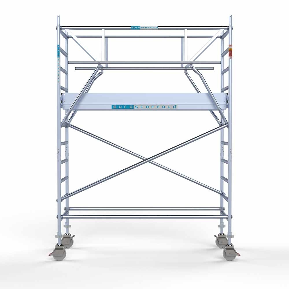Euroscaffold Andamio rodante completo cubierta de carbono 90 x 250 x 4,2 m altura de trabajo + barandillas frontales de doble cara