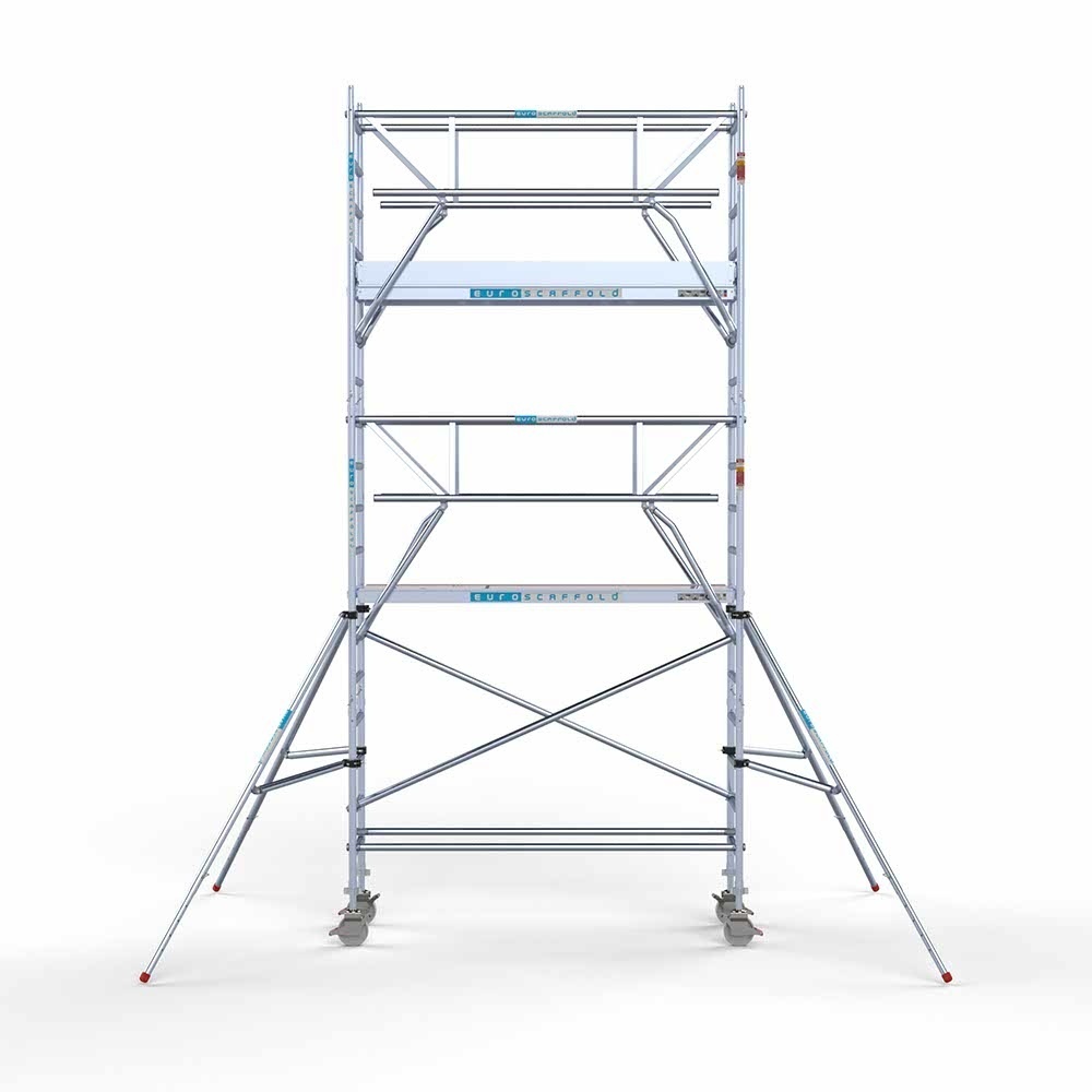 Euroscaffold Andamio móvil completo 75 x 250 x 6,2 m altura de trabajo incl. doble barandilla frontal