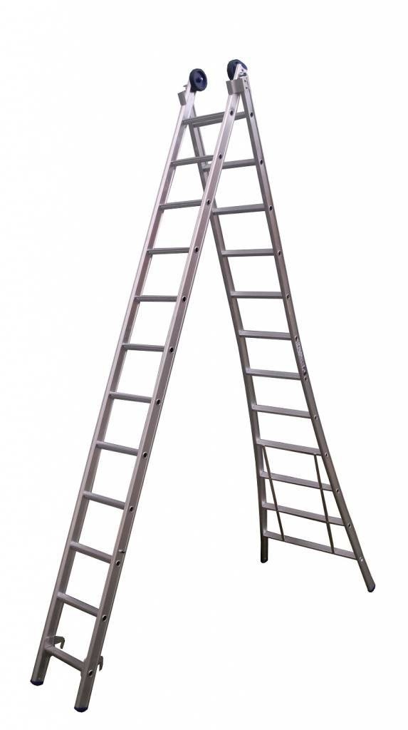 MAXALL Escalera de reforma de dos piezas 2x12 + rodillos de frontón/superior
