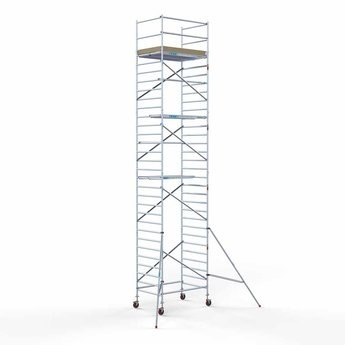 El remolque viene con un andamio rodante de base de aluminio con una altura de trabajo de 11,2 metros, una anchura de 135 cm y una longitud de 250 cm. Es nuestro andamio más habitual, utilizado a menudo para trabajos semiprofesionales y profesionales al aire libre, es fácil de manejar, ofrece suficiente espacio de trabajo y es fácil de montar y desmontar. En resumen, ¡calidad a un precio competitivo!