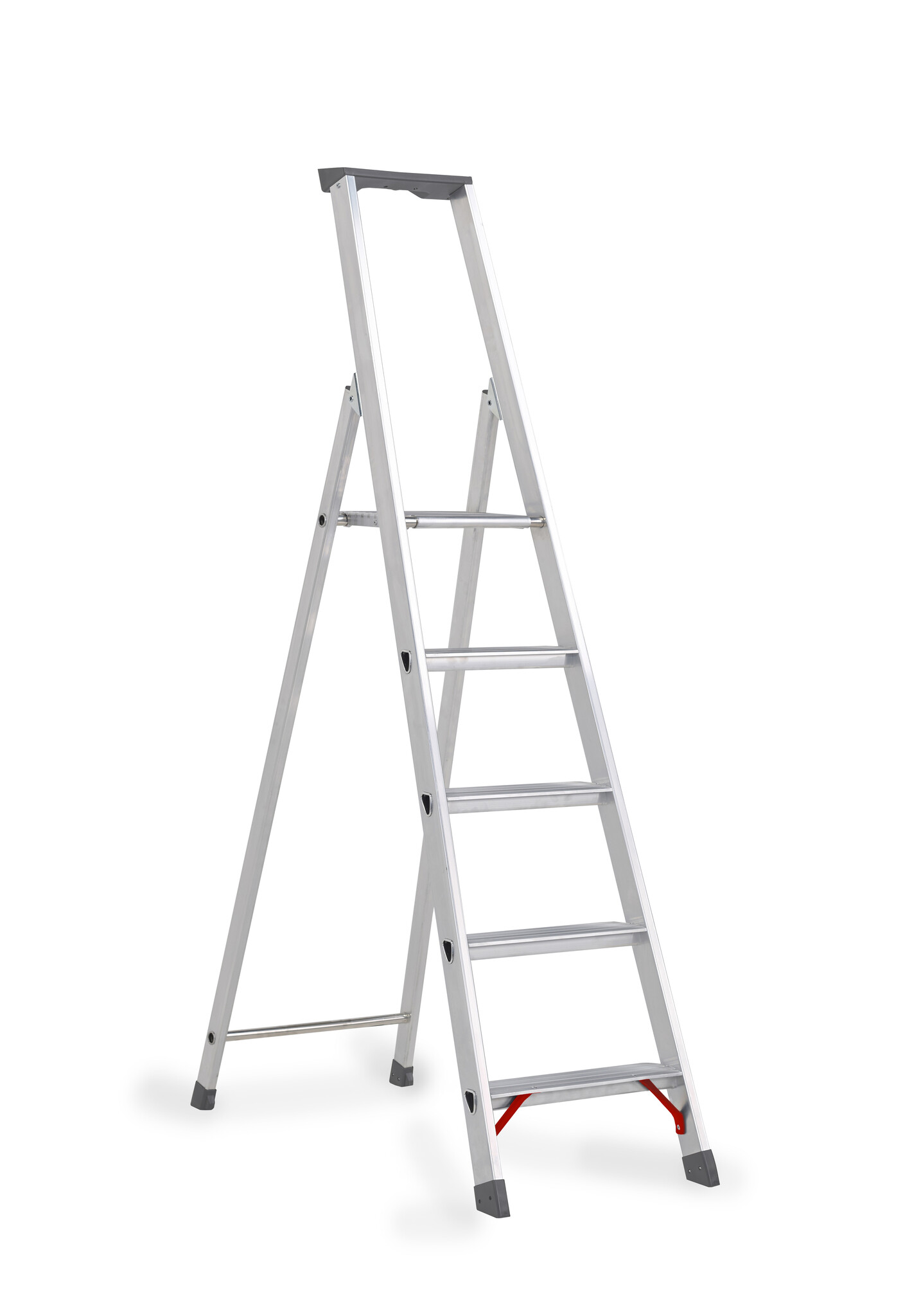 De Yara is een enkel oploopbare trap met 5 treden die geschikt is voor professioneel gebruik. Extra brede treden waarop je prettiger staat en daardoor ook veiliger werkt. De lichtste trap voor professioneel gebruik.